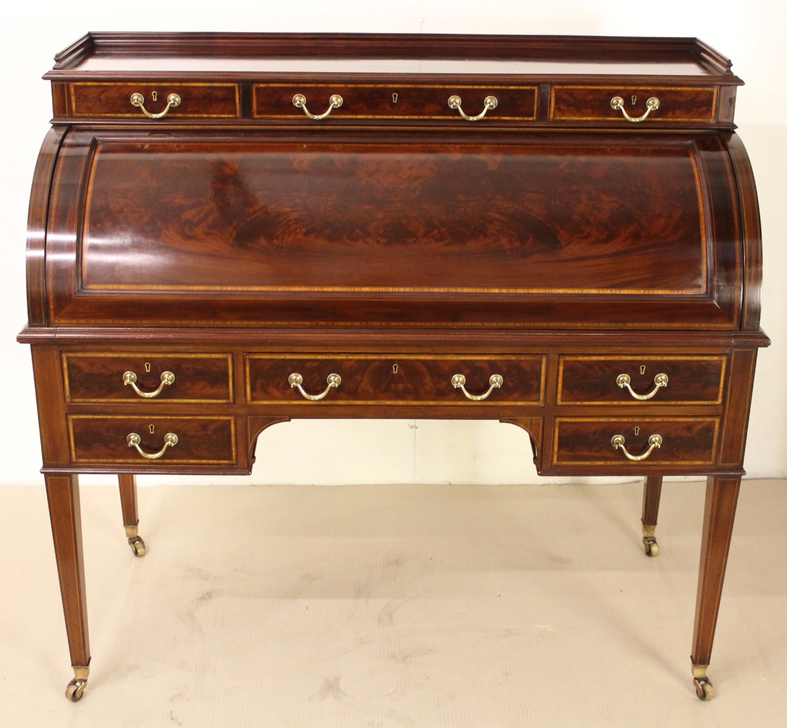 Inlaid Mahogany Cylinder Bureau by Maple & Co c.1890 (1 of 1)