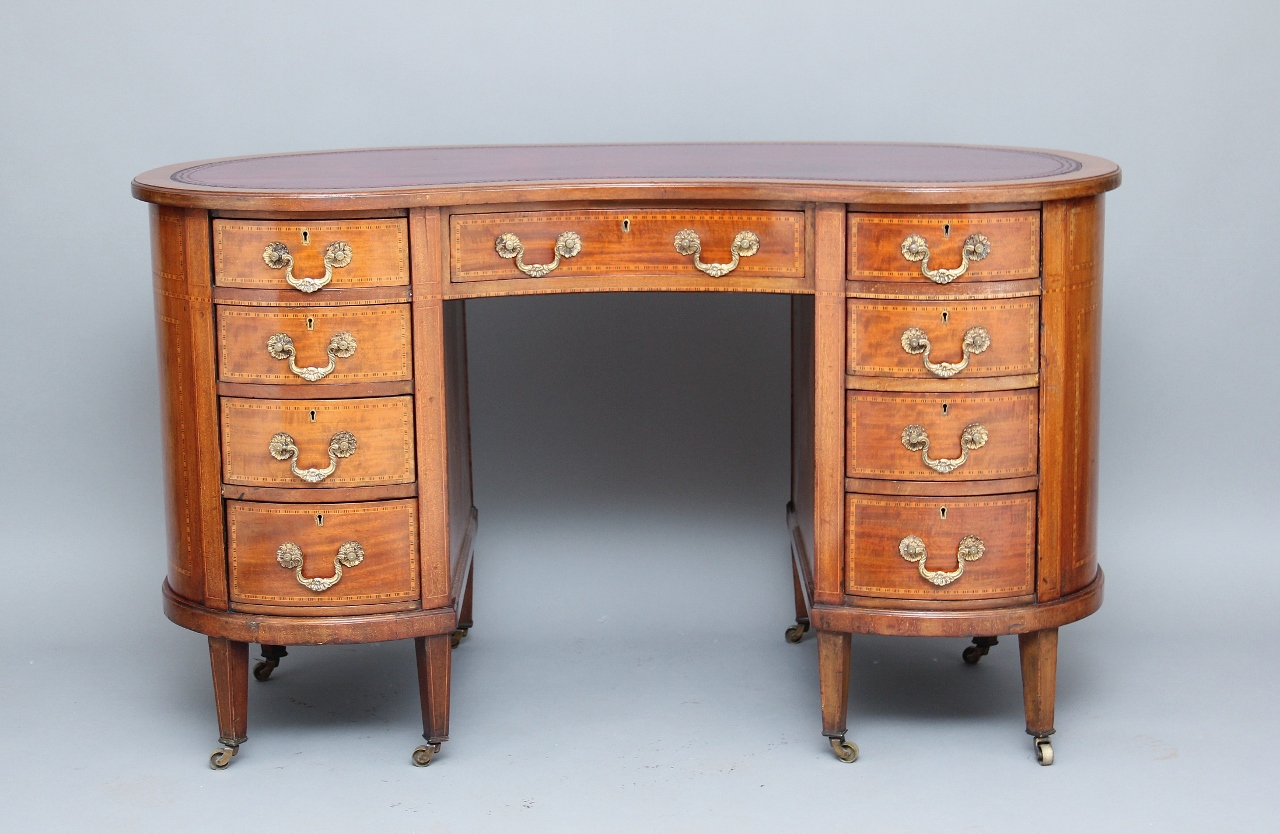 Inlaid Mahogany Kidney Shaped Desk c.1900