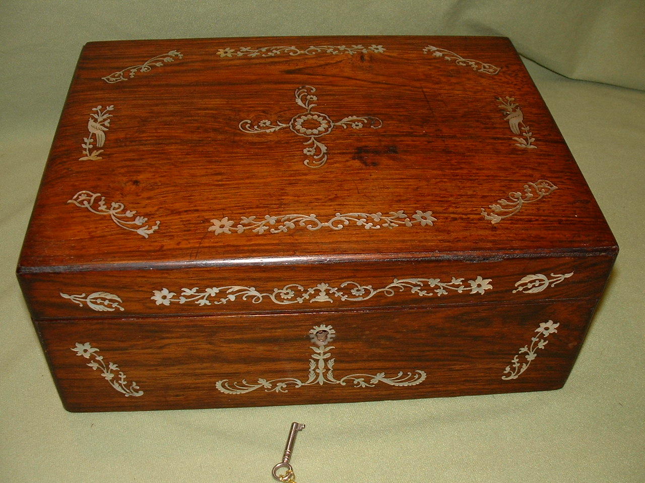 Inlaid Rosewood Jewellery Box. Fitted Tray c.1840