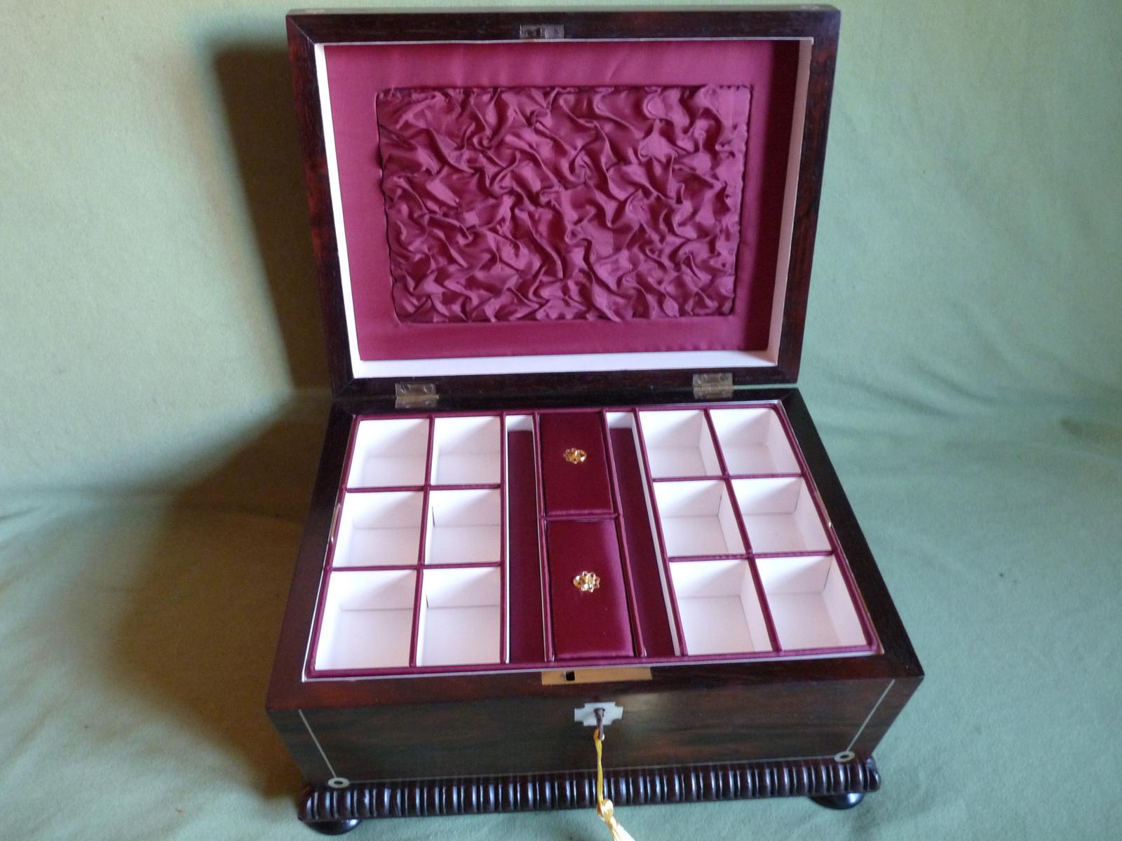 Inlaid Rosewood Jewellery Box. Plush Interior.