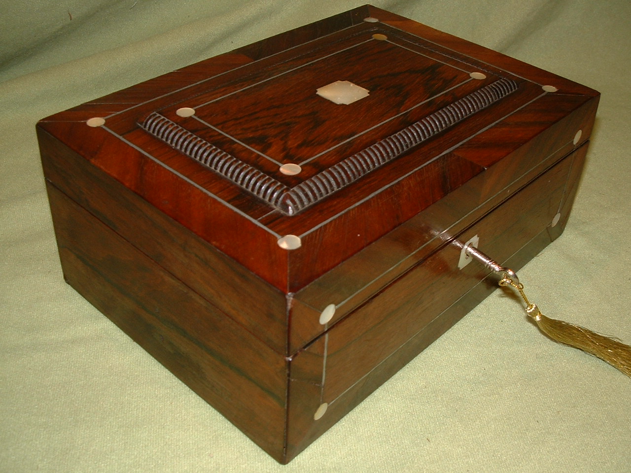Inlaid Rosewood Jewellery Box + Tray c.1850