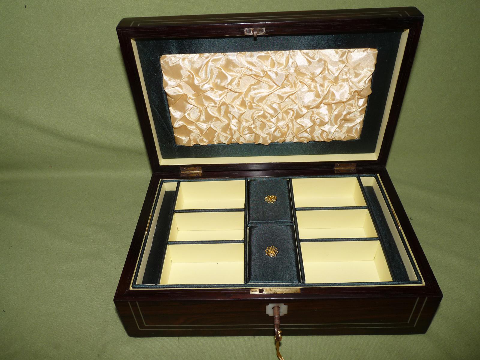 Inlaid Rosewood Jewellery Box + Tray. Plush Interior
