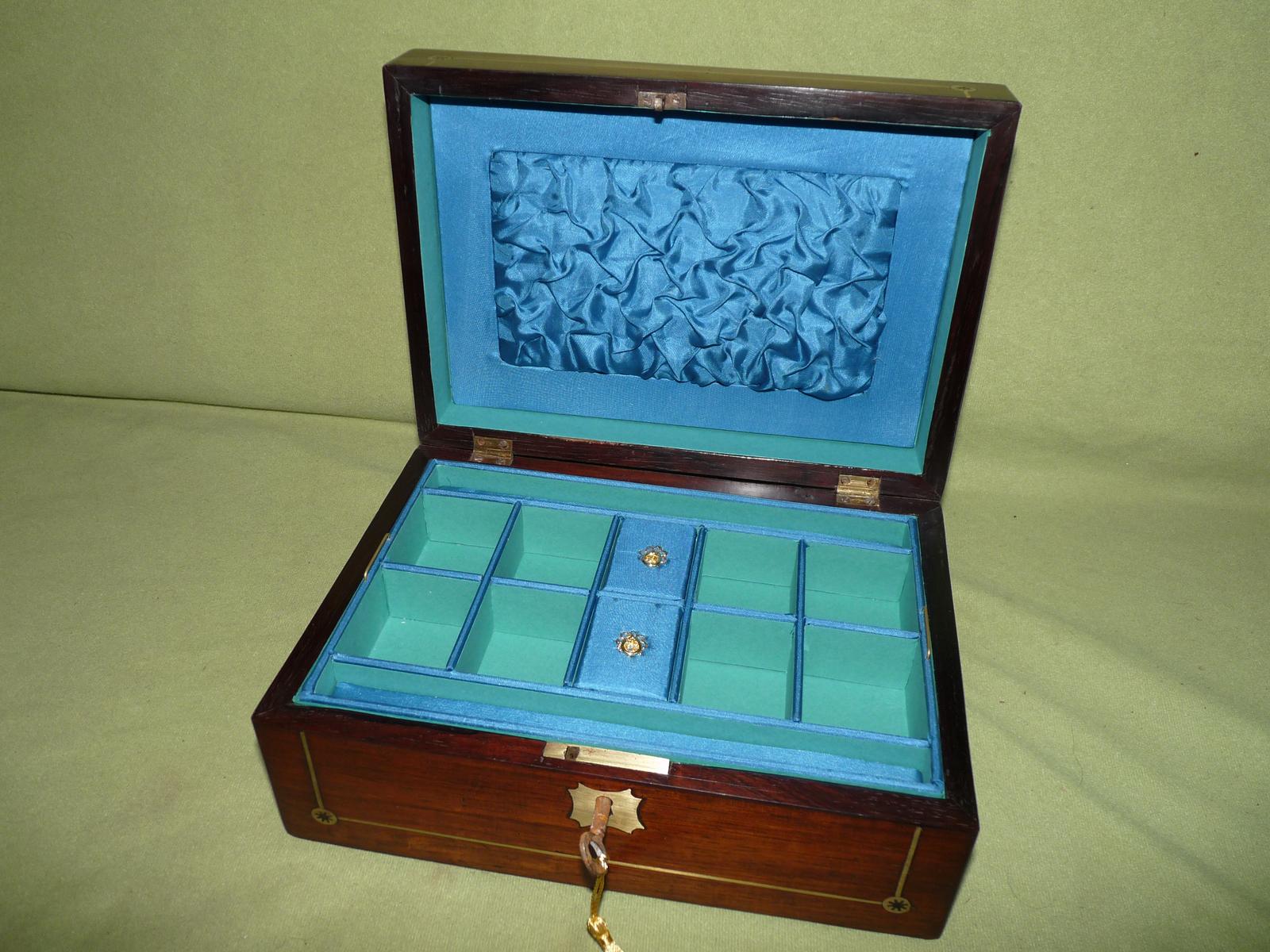 Inlaid Rosewood Jewellery Box + Tray. Plush Interior