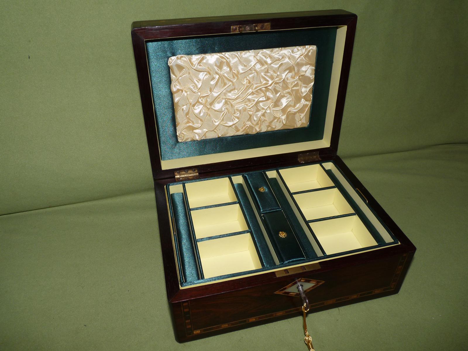 Inlaid Rosewood Jewellery Box + Tray. Plush Interior. C1880