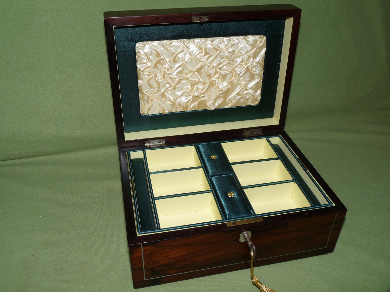 Inlaid Rosewood Jewellery Box + Tray - Plush Interior c.1880