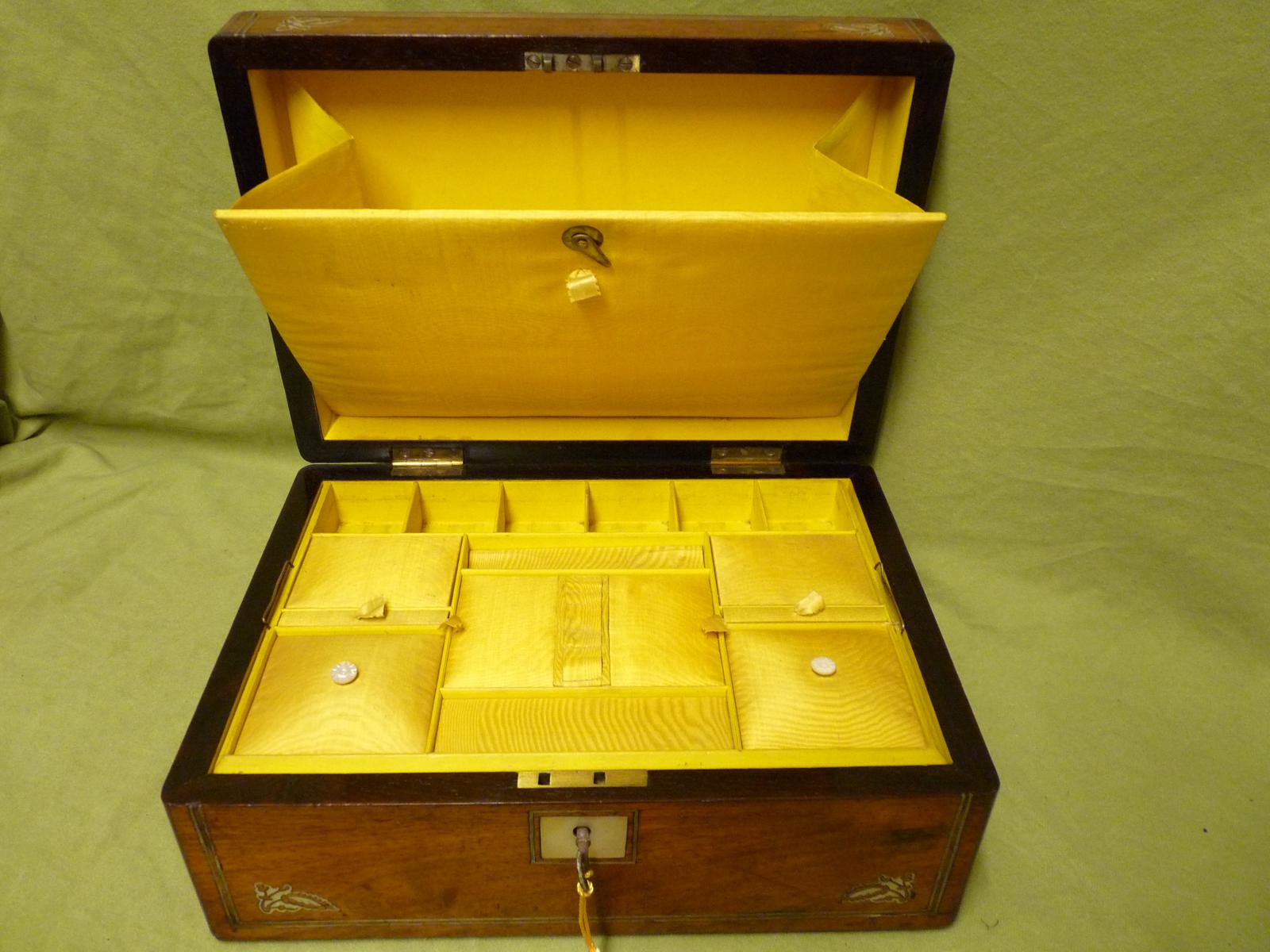 Inlaid Rosewood Jewellery / Work Box - Original Tray c.1850