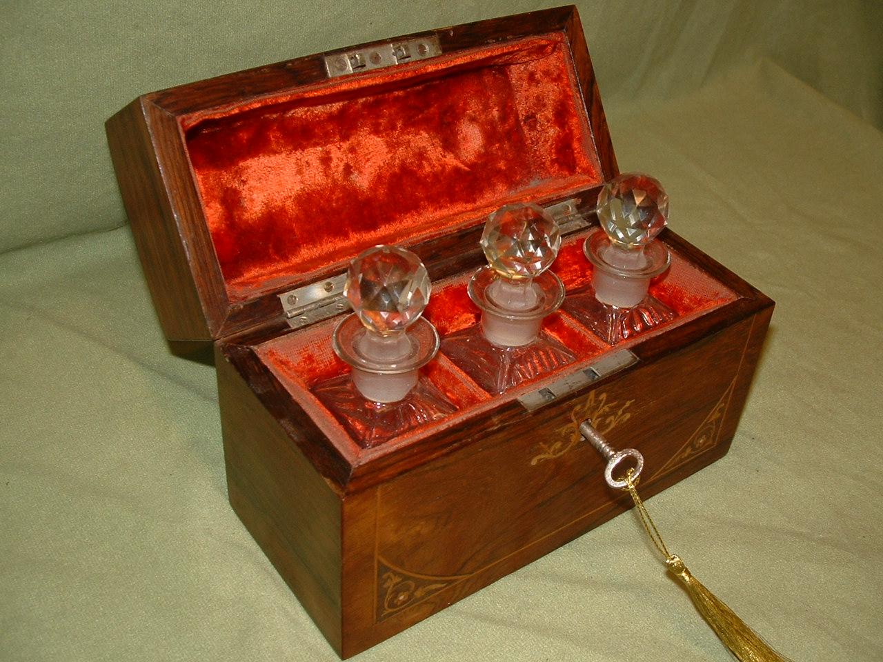 Inlaid Rosewood Scent Bottle Box – Original Bottles c.1865