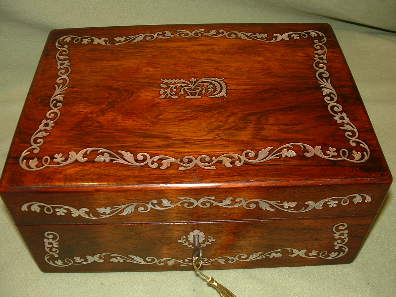 Inlaid Rosewood Vanity Box + Fitted Interior c.1850