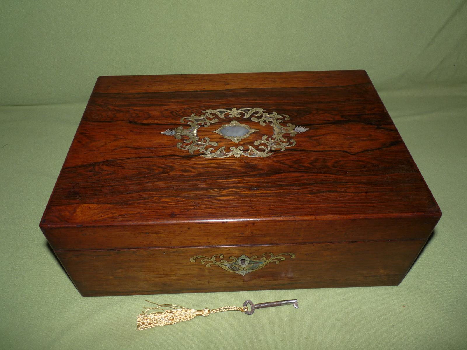 Inlaid Rosewood Writing Box - Extended Office Section c.1870