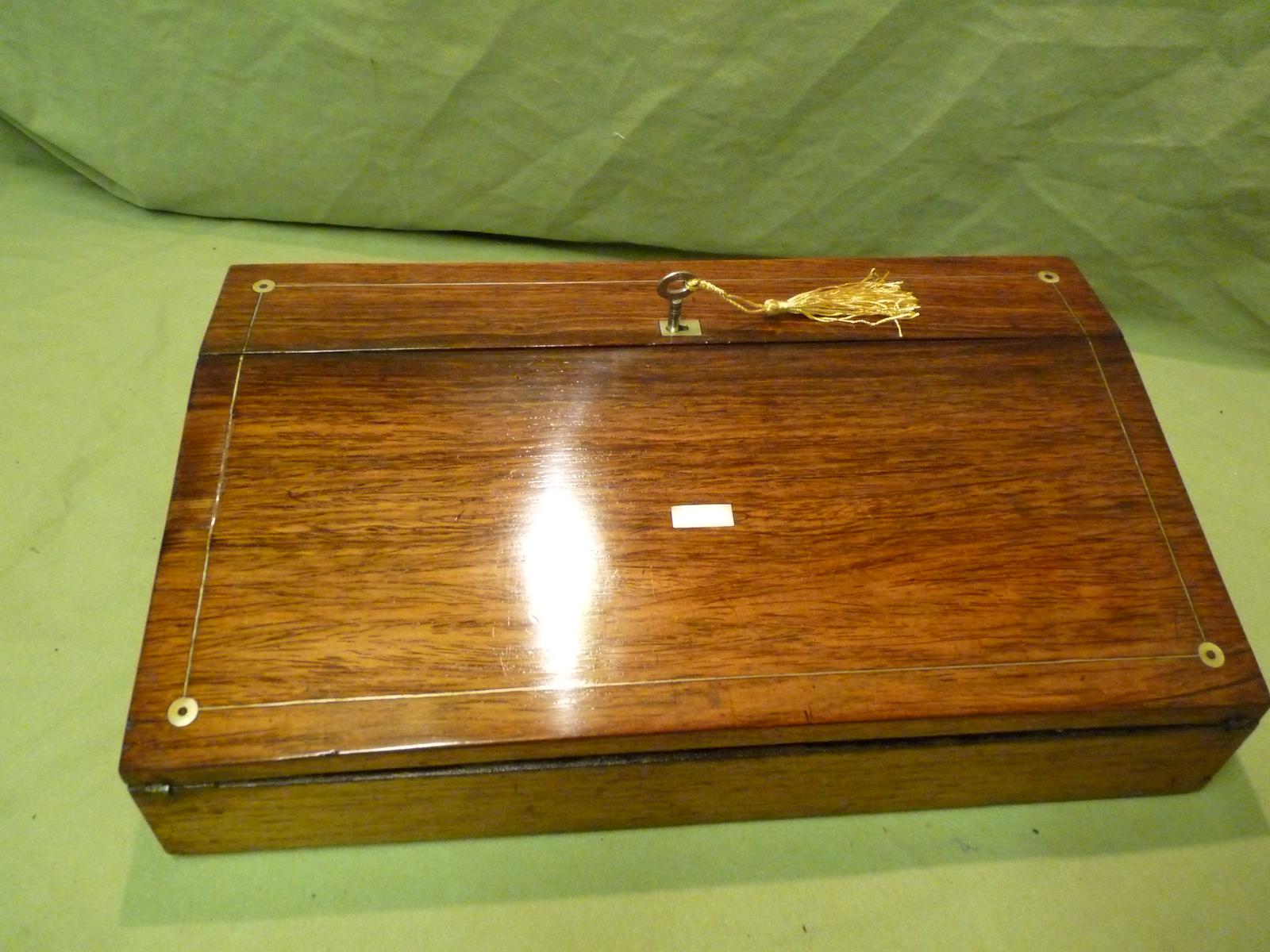 Inlaid Rosewood Writing Box - Original Leather c.1845