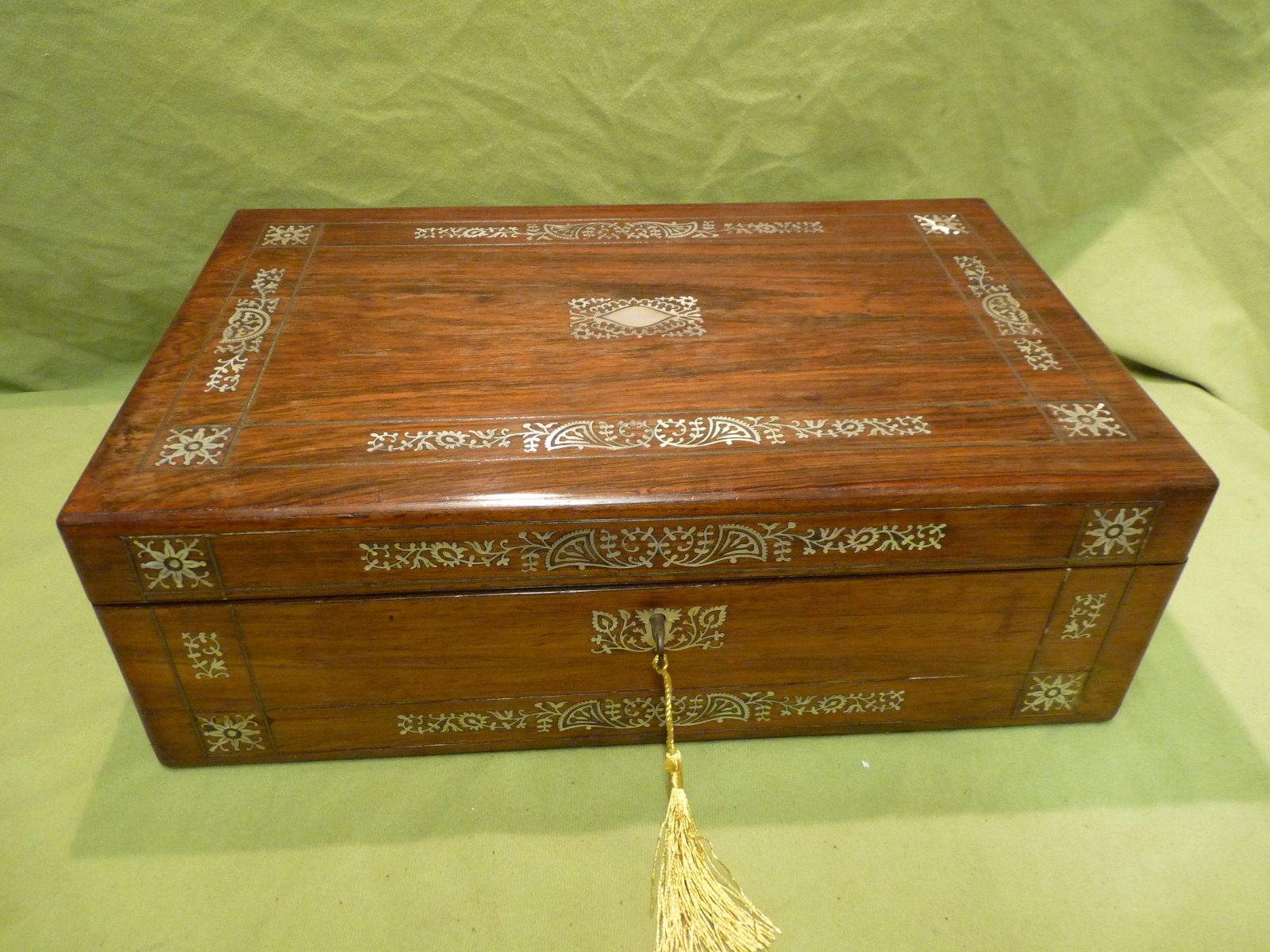 Inlaid Rosewood Writing Box. Original Velvet c.1840