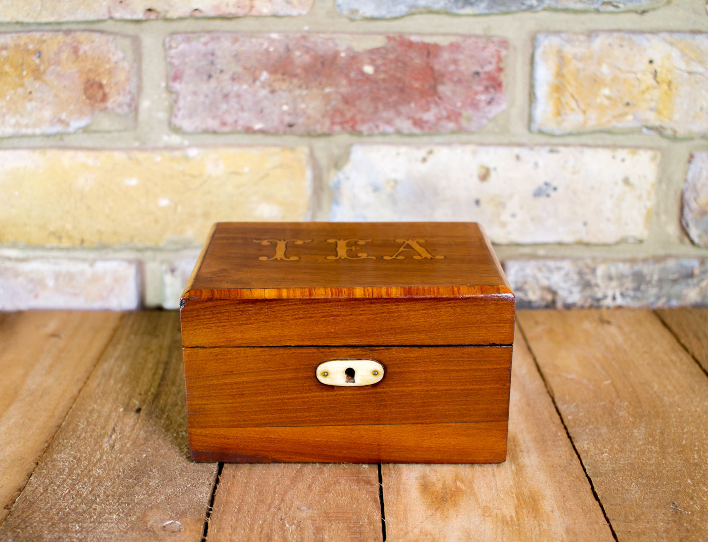 Inlaid Tea Figured Walnut Tea Caddy c.1920 (1 of 1)