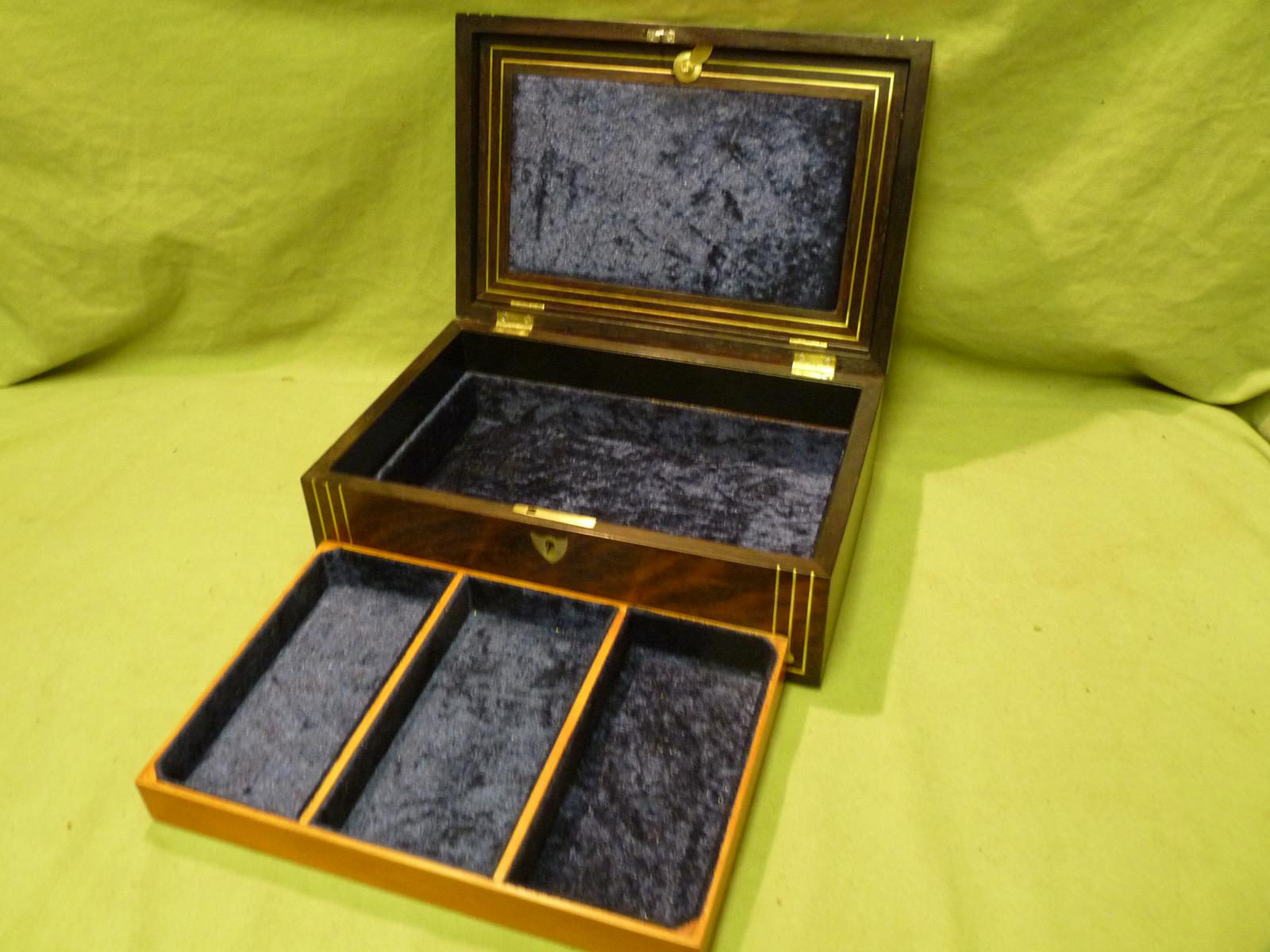 Inlaid Unisex Rosewood Jewellery Box + Tray. c1835
