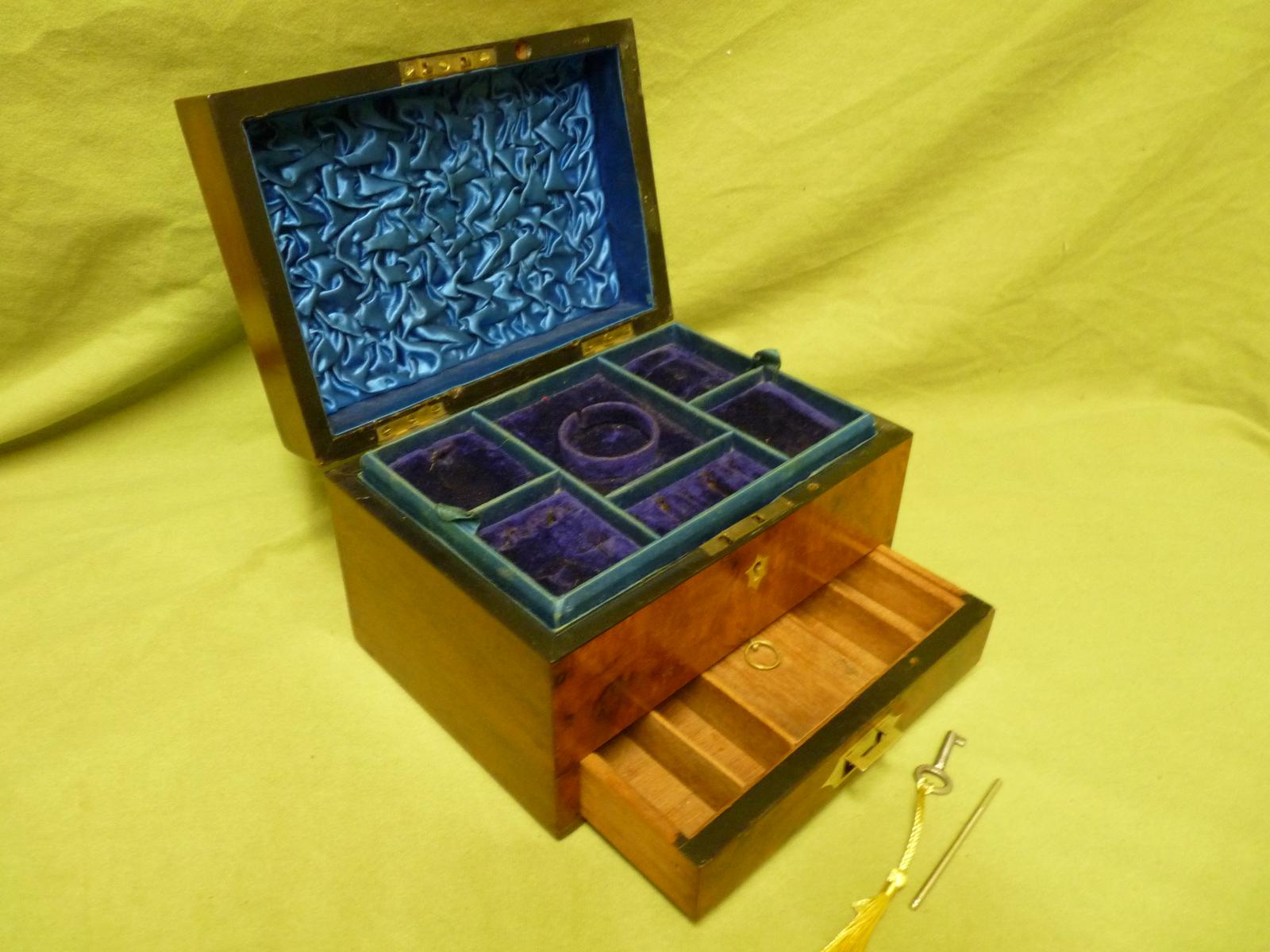Inlaid Unisex Walnut Jewellery Box - Tray + Front Drawer c.1870