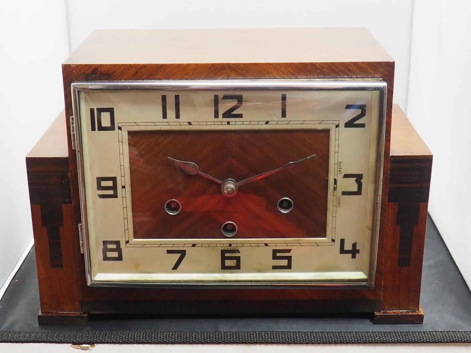 Inlaid Walnut Antique Westminster Chime Art Deco 8 Day Striking Mantel Clock (1 of 9)