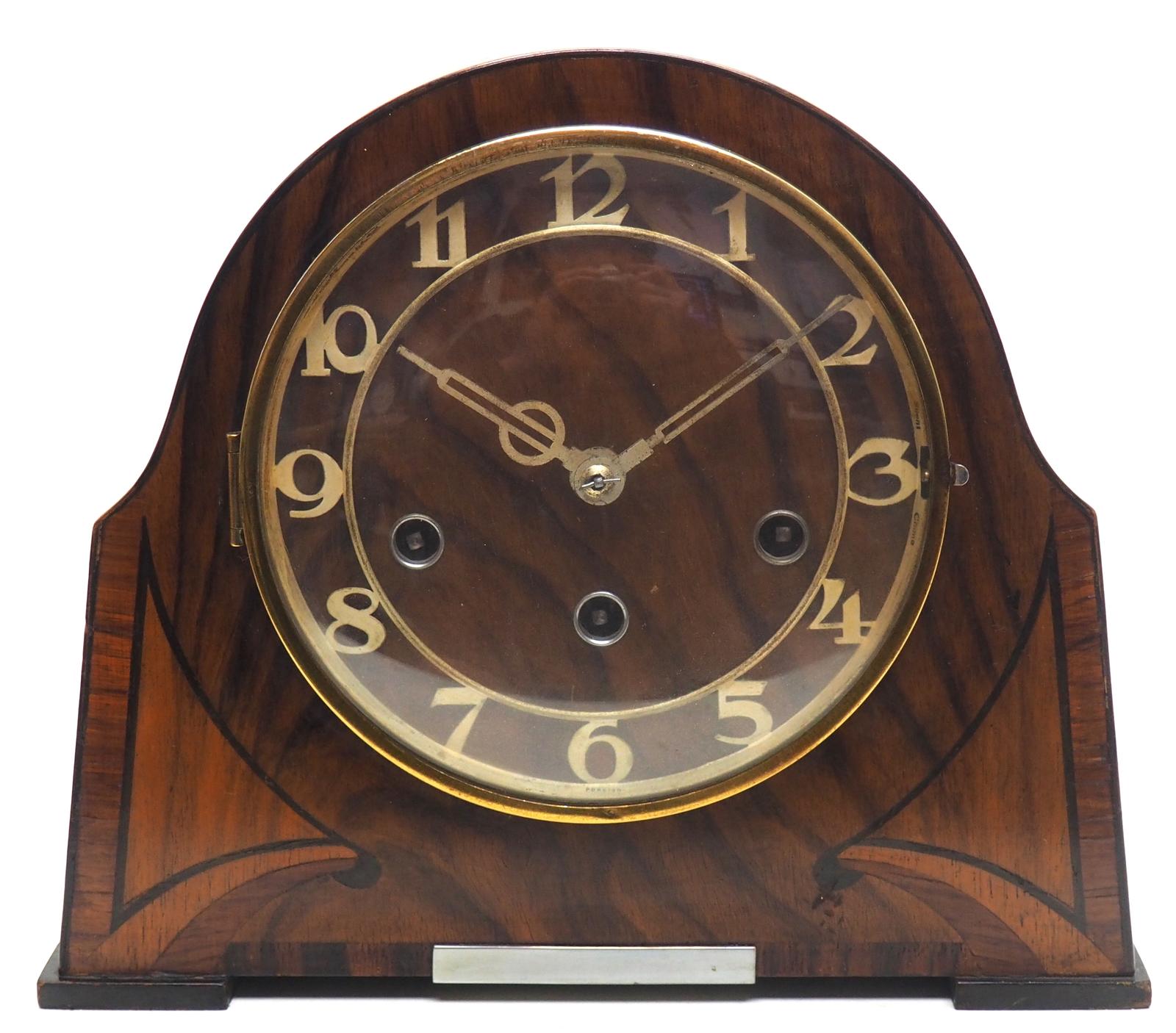 Inlaid Walnut Antique Westminster Chime Art Deco 8 Day Striking Mantel Clock