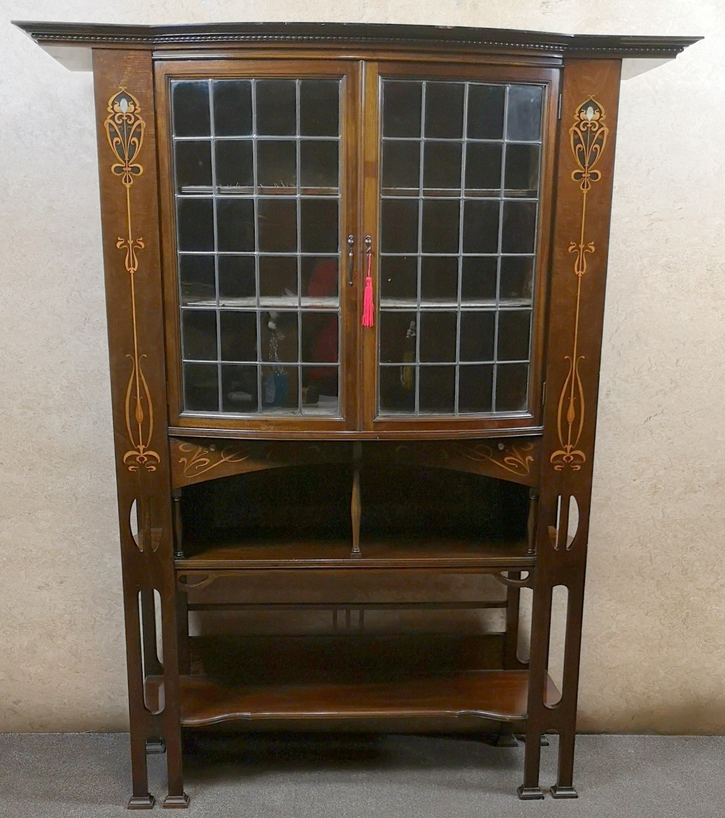 Inlaid Walnut Art Nouveau Display Cabinet C.1900 (1 of 1)