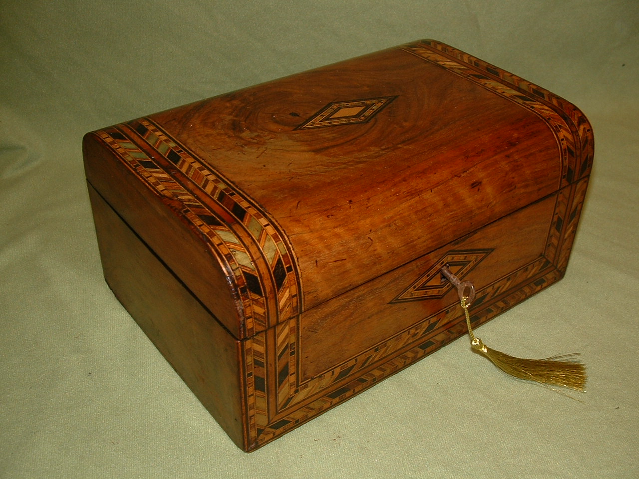 Inlaid Walnut Jewellery Box + Tray c.1880