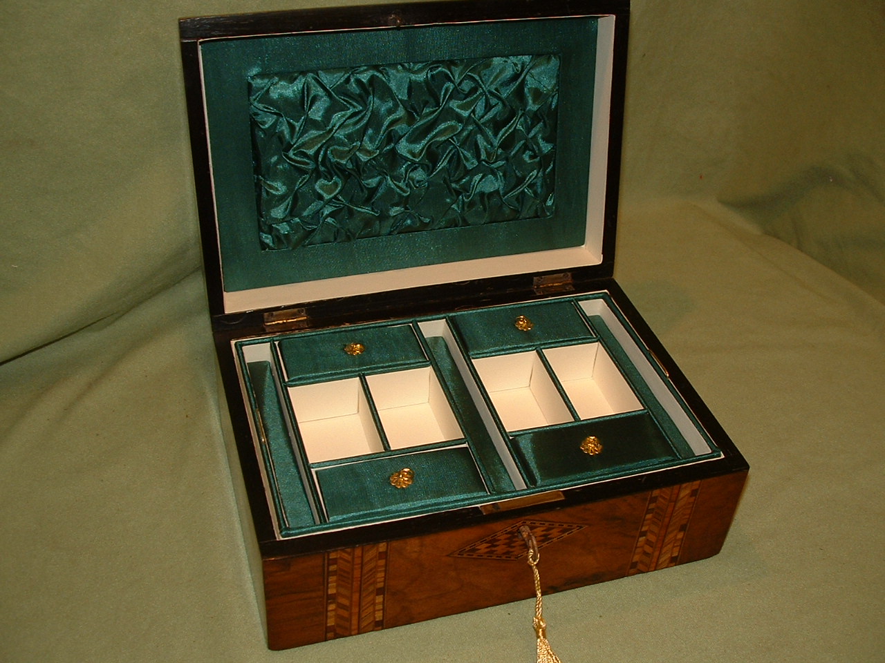 Inlaid Walnut Jewellery Box + Tray c.1880