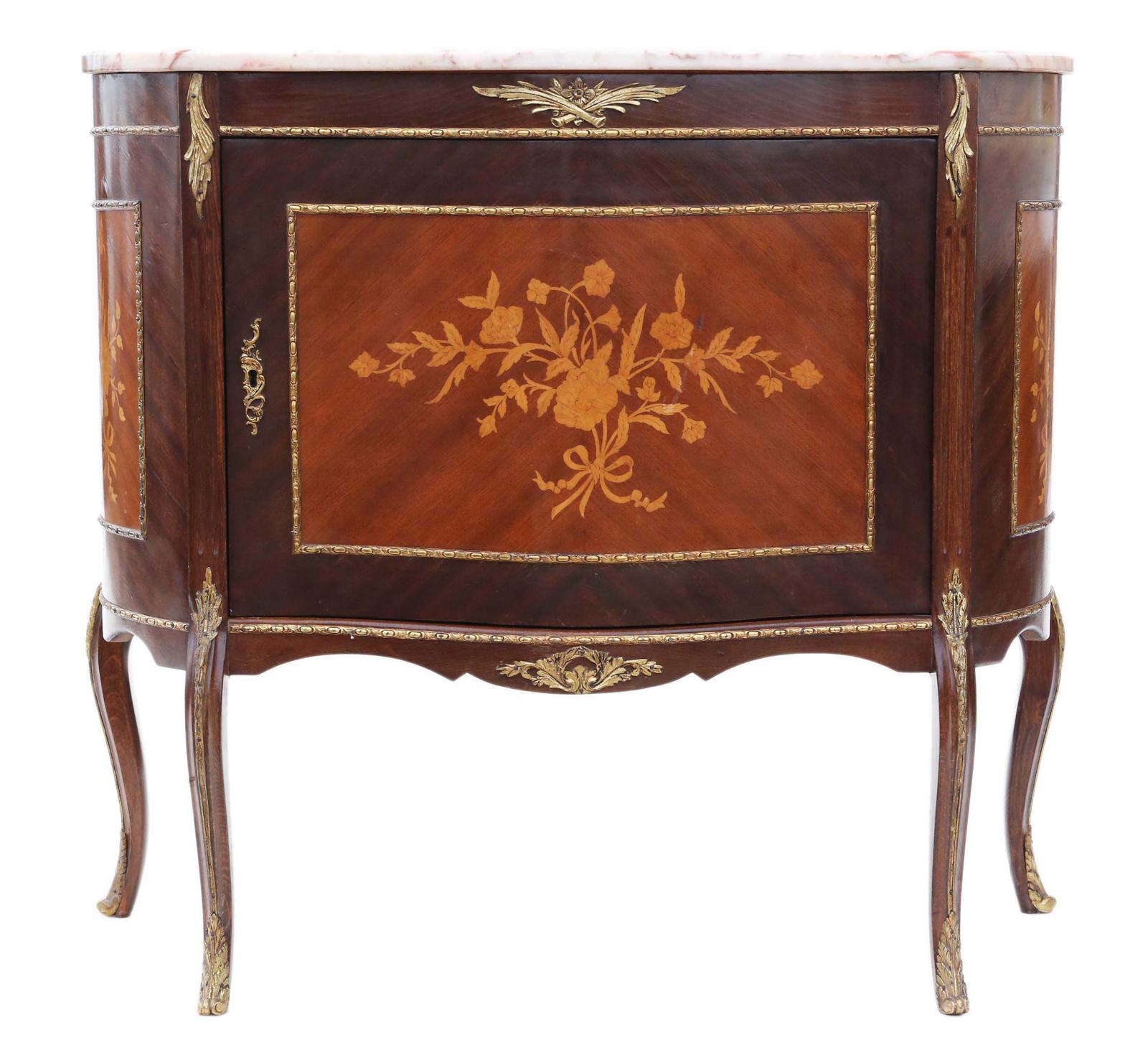 Inlaid Walnut & Marble Console Cupboard Bedside Table Chest