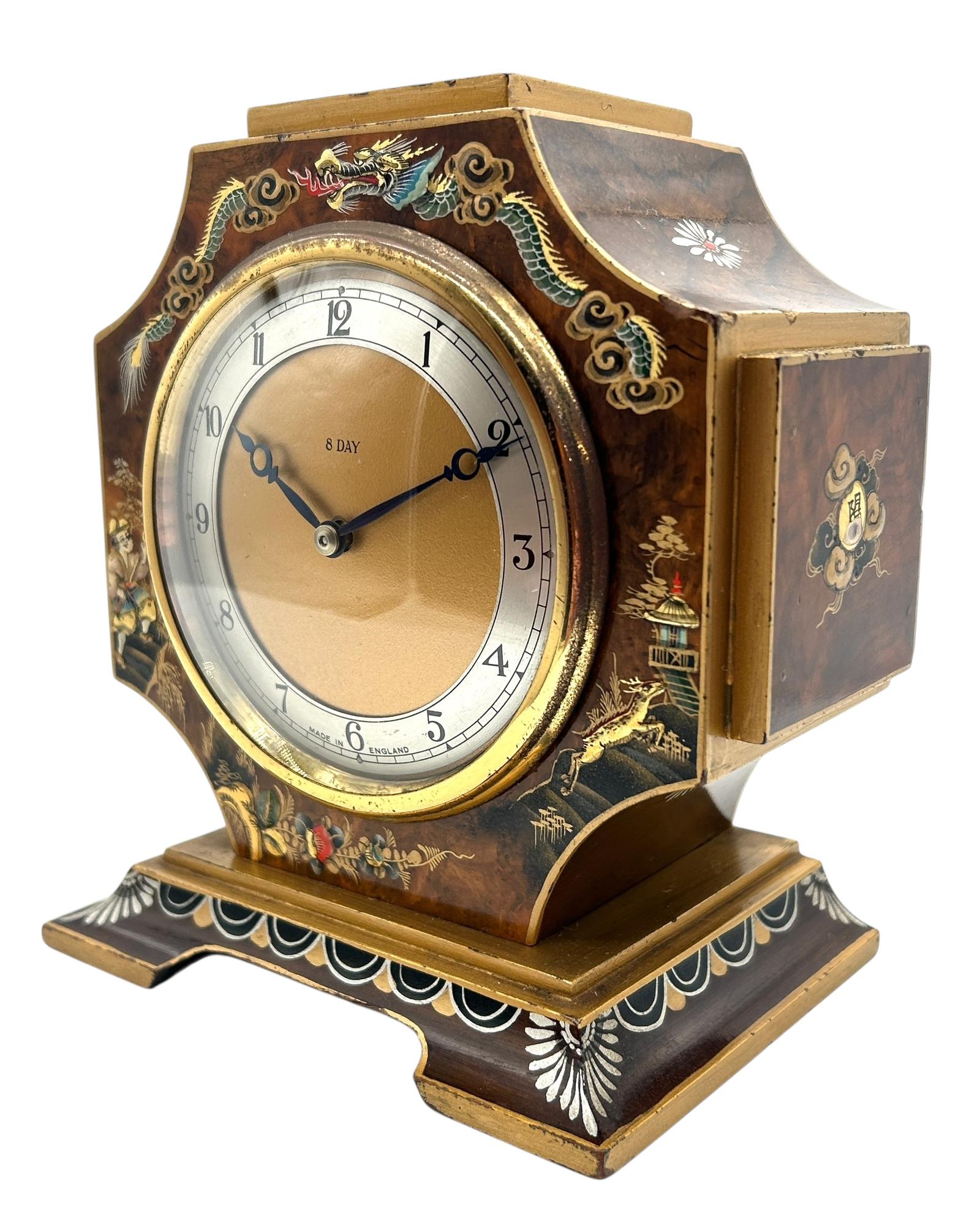 Interesting Red Chinoiserie Mantel Clock – Gilt Gold Decoration Silver Dial 8-day Clock