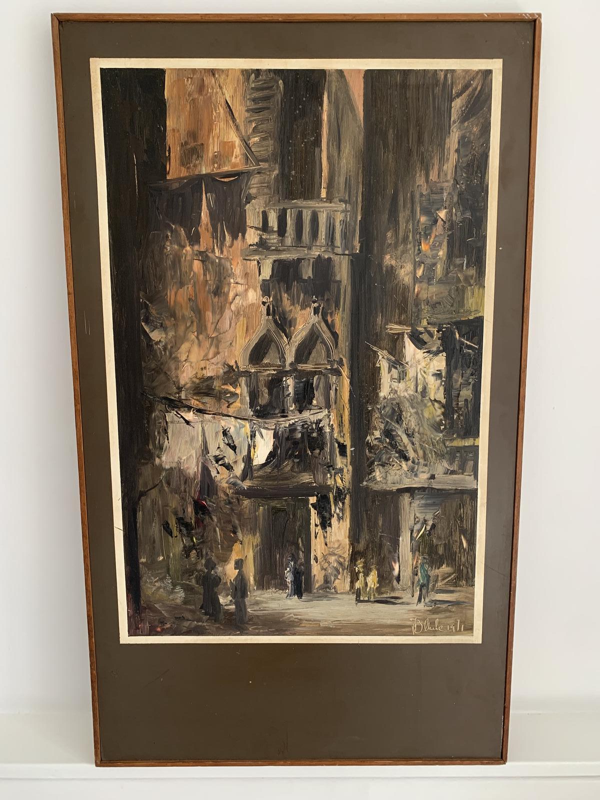 Interesting Midcentury Oil on Board Painting with Influences of John Piper & Frank Auerbach, Signed Clarke '71