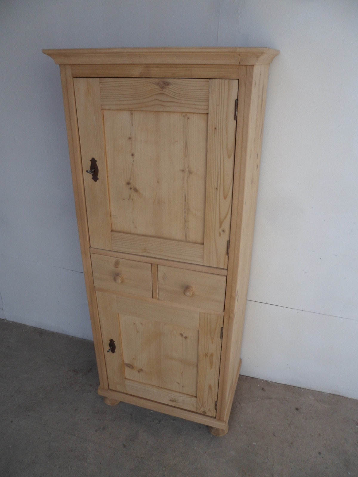 Interesting Pine Tall Thin 2 Door 2 Drawer Storage Cupboard to wax / paint c.1920
