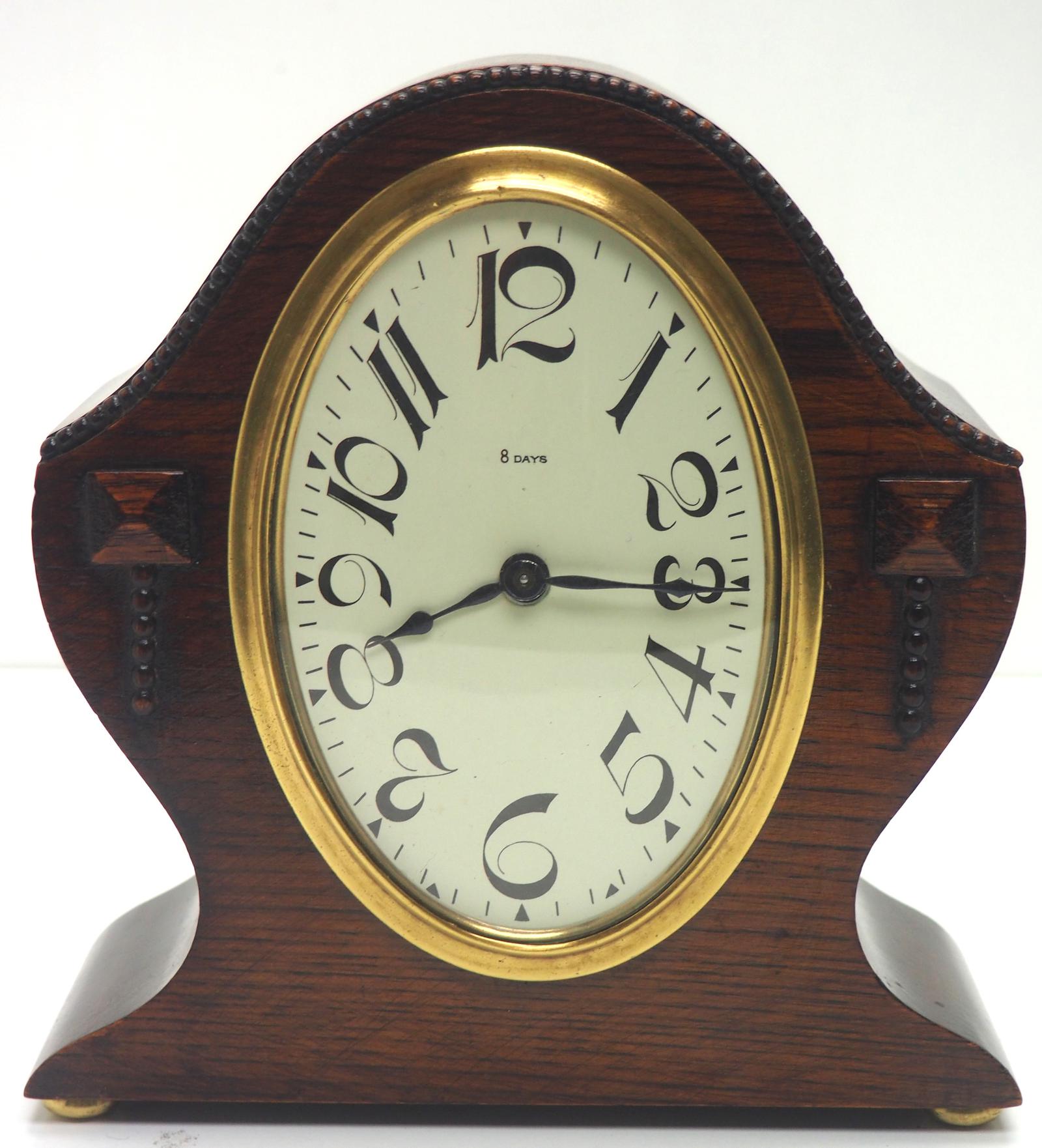 Interesting Rare Antique English 8-day Oak Mantel Clock