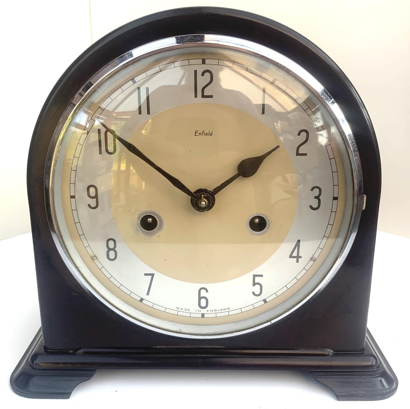 Interesting Smiths Enfield English Art Deco 8 Day Striking Bakelite Mantel Clock