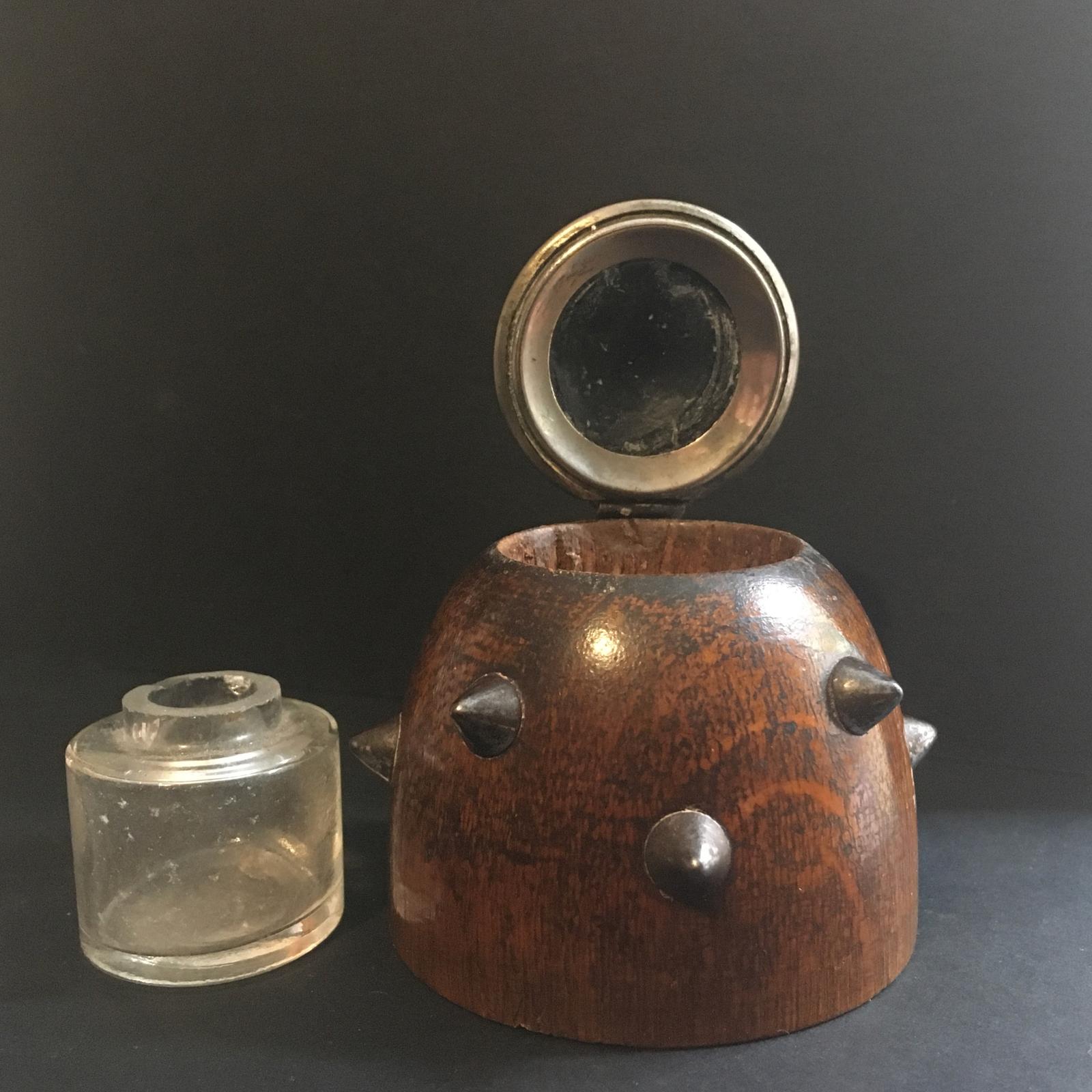 Intriguing But Beautiful Antique Treen Studded Inkwell