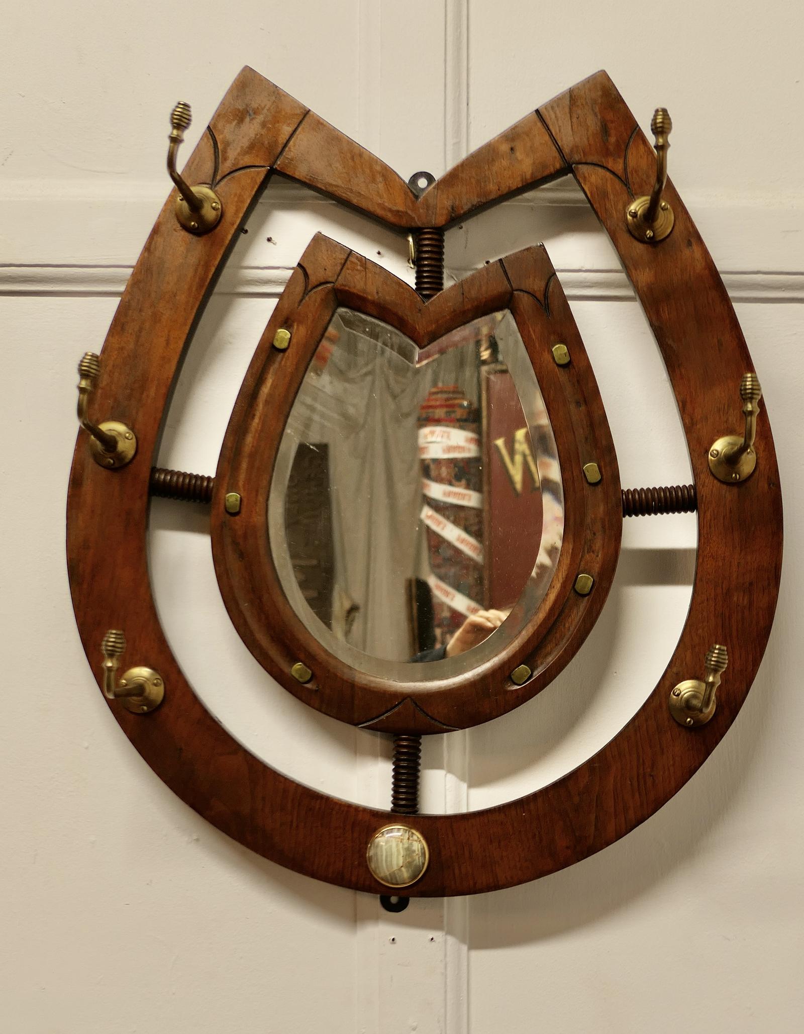 Irish Arts & Crafts Mirrored Horseshoe Coat & Tack Rack