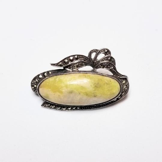 Irish Connemara Marble & Marcasite Silver Brooch - Hallmarked Dublin 1967