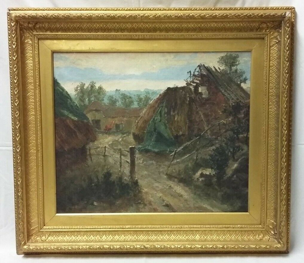 'Irish Crofter's Barn' Large Oil on Canvas Impressionist Painting c.1880