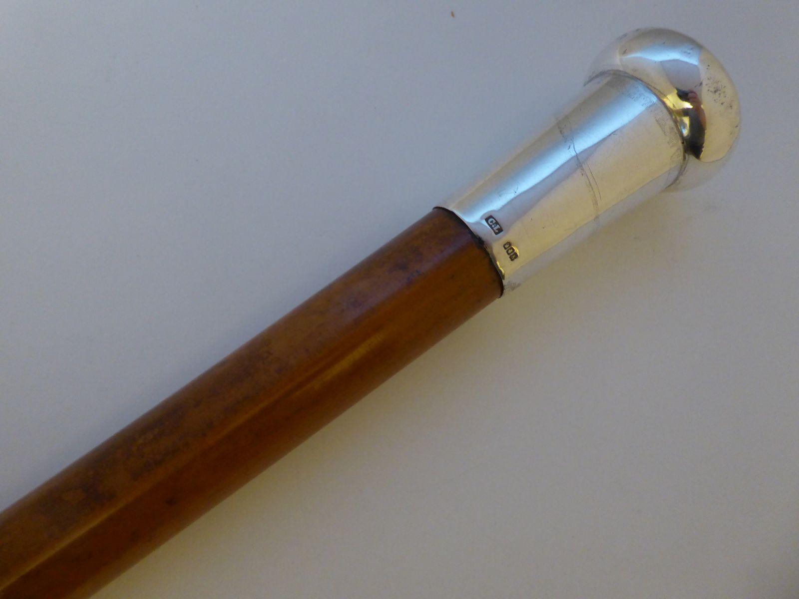 Irish Dublin Walking Stick Cane 1922 Silver Pommel Malacca Wood Shaft Over Size