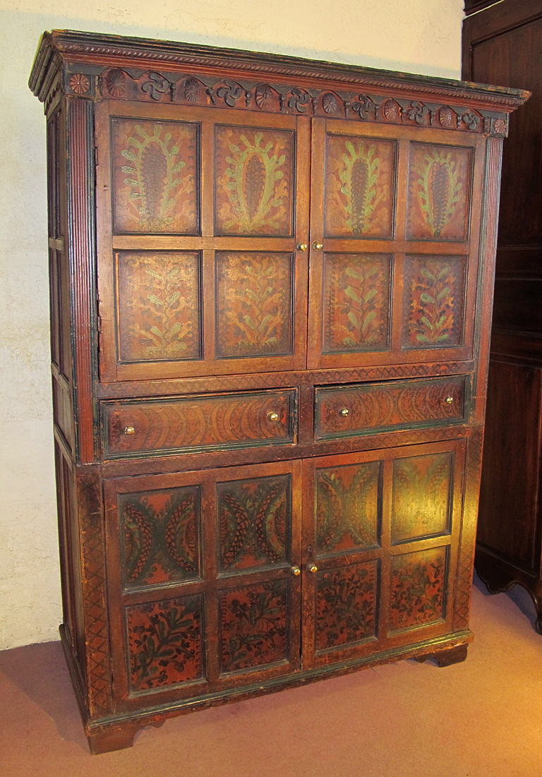 Irish Early 19th Century Folk Art Painted Linen Cupboard C 1820