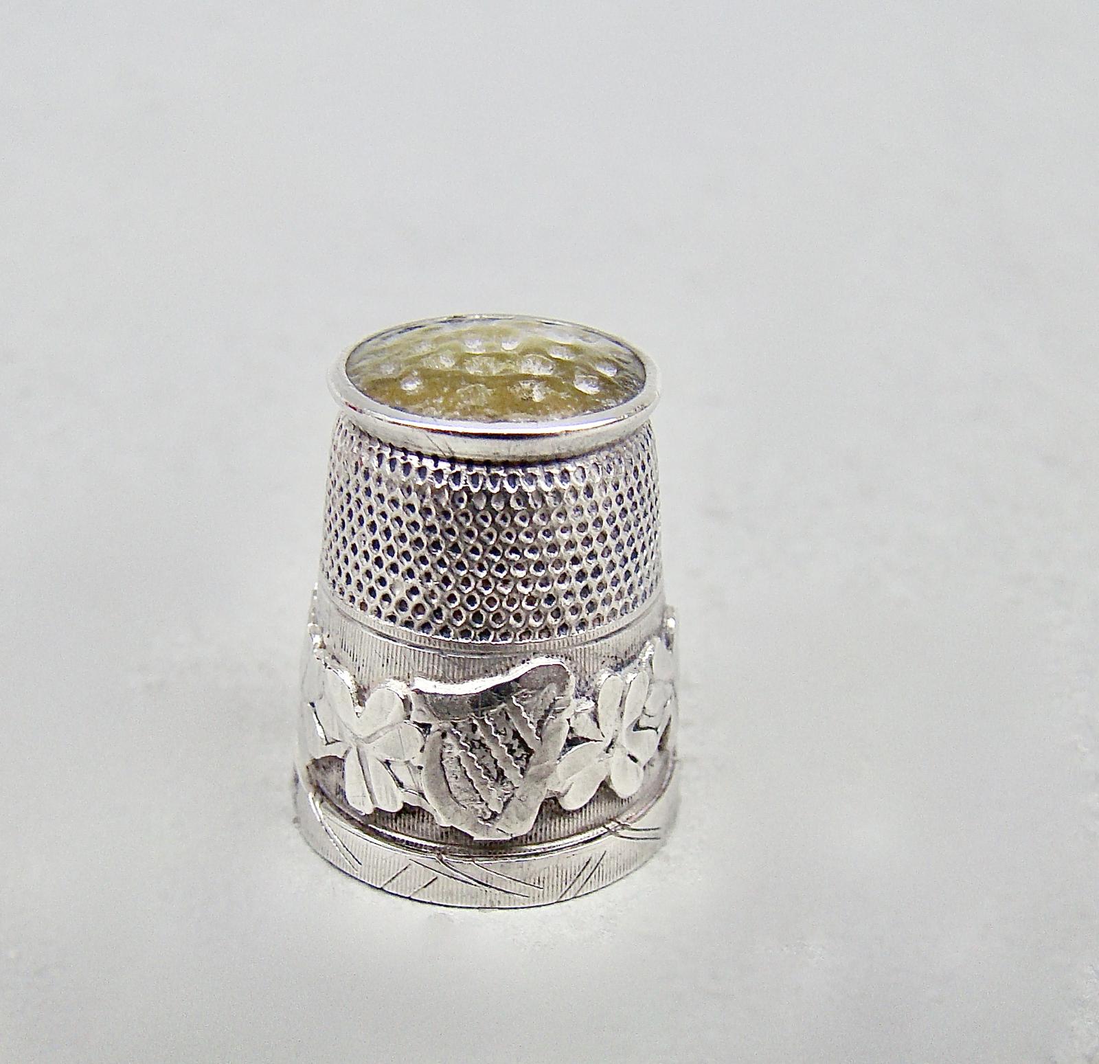 Irish Interest Silver & Agate Thimble by James Swann & Son, Birmingham 1925