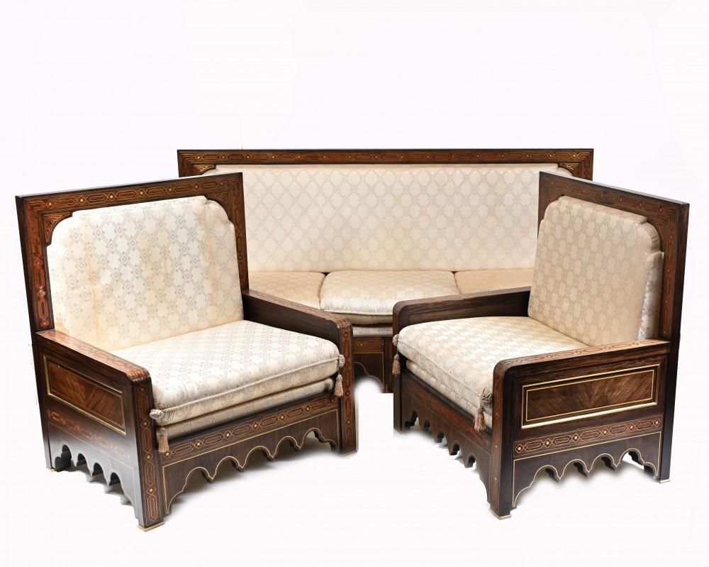 Islamic Settee & Armchair Suite Boulle Inlay Couch