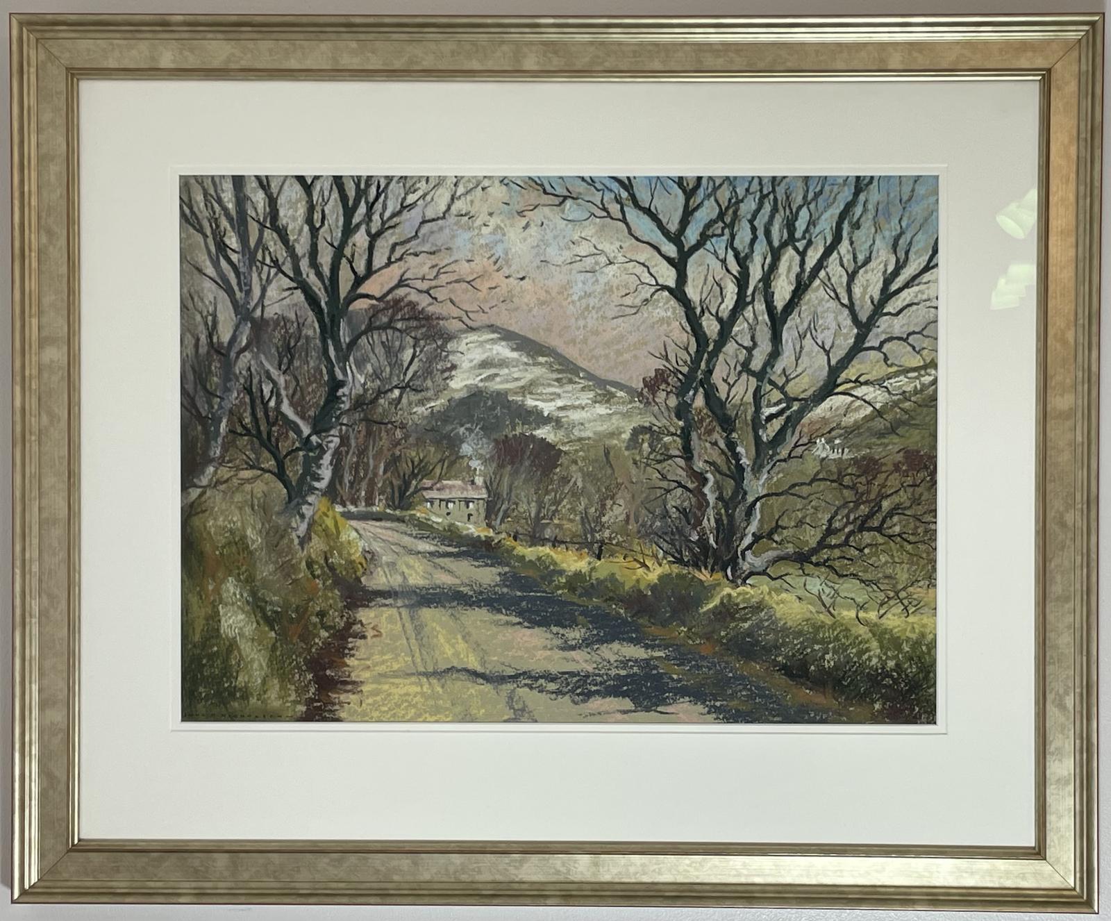 A rare landscape pastel thought to depict Sulby Glen, Isle of Man by renowned Manx artist, John Hobson Nicholson (1911 - 1988). Signed lower left.