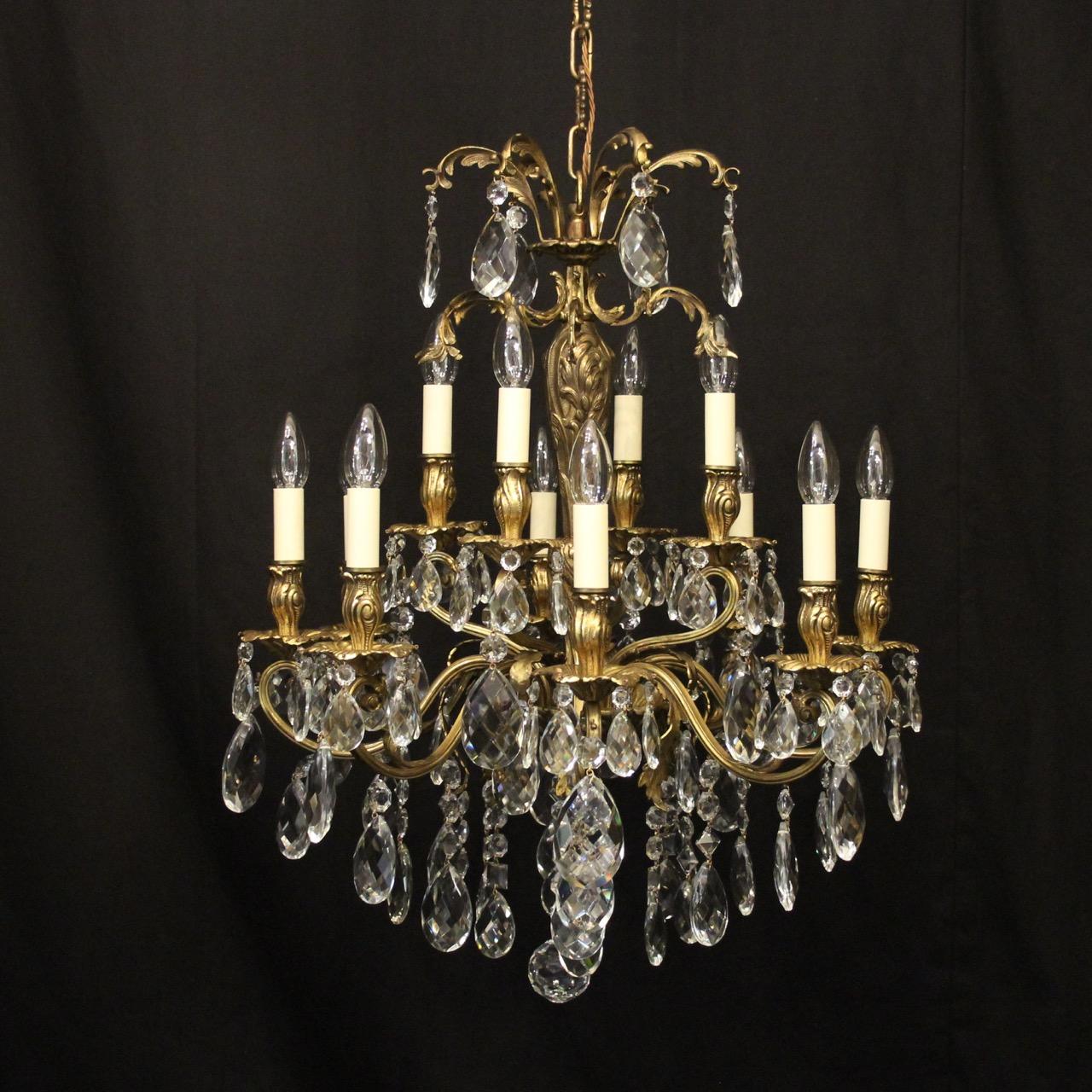 Italian 12 Light Gilded Bronze Antique Chandelier