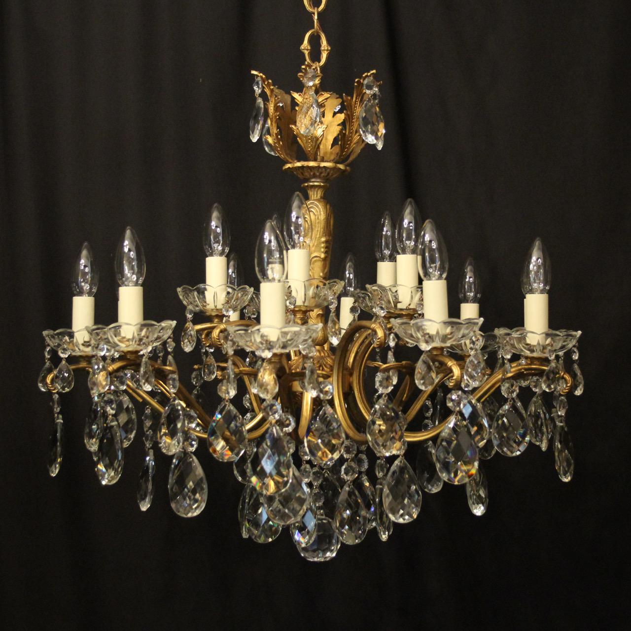Italian 15 Light Gilded Brass Antique Chandelier