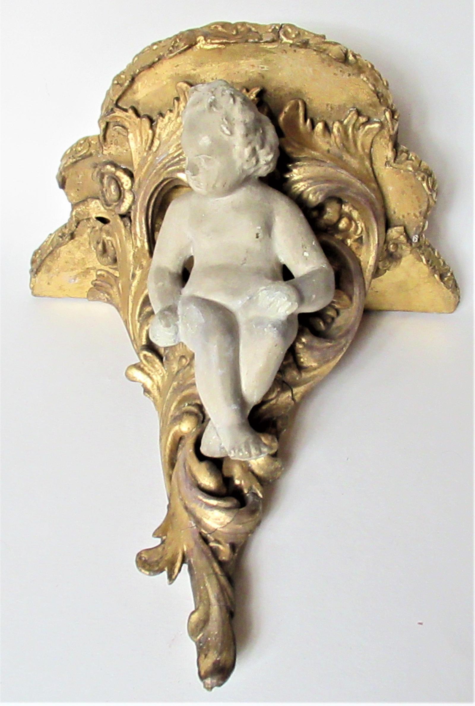Italian 18th Century Carved and Gilded Shelf Bracket with Plaster Putto, ex Country House