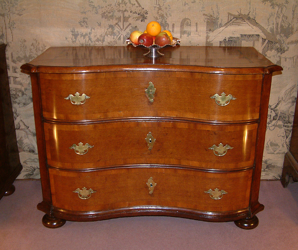 Italian 18th Century Serpentine Fronted Oak and Walnut Commode