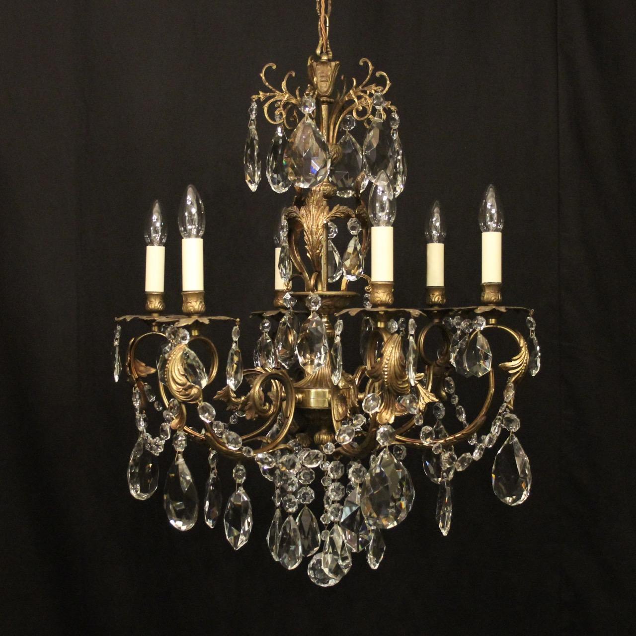 Italian 6 Light Gilded Brass Antique Chandelier