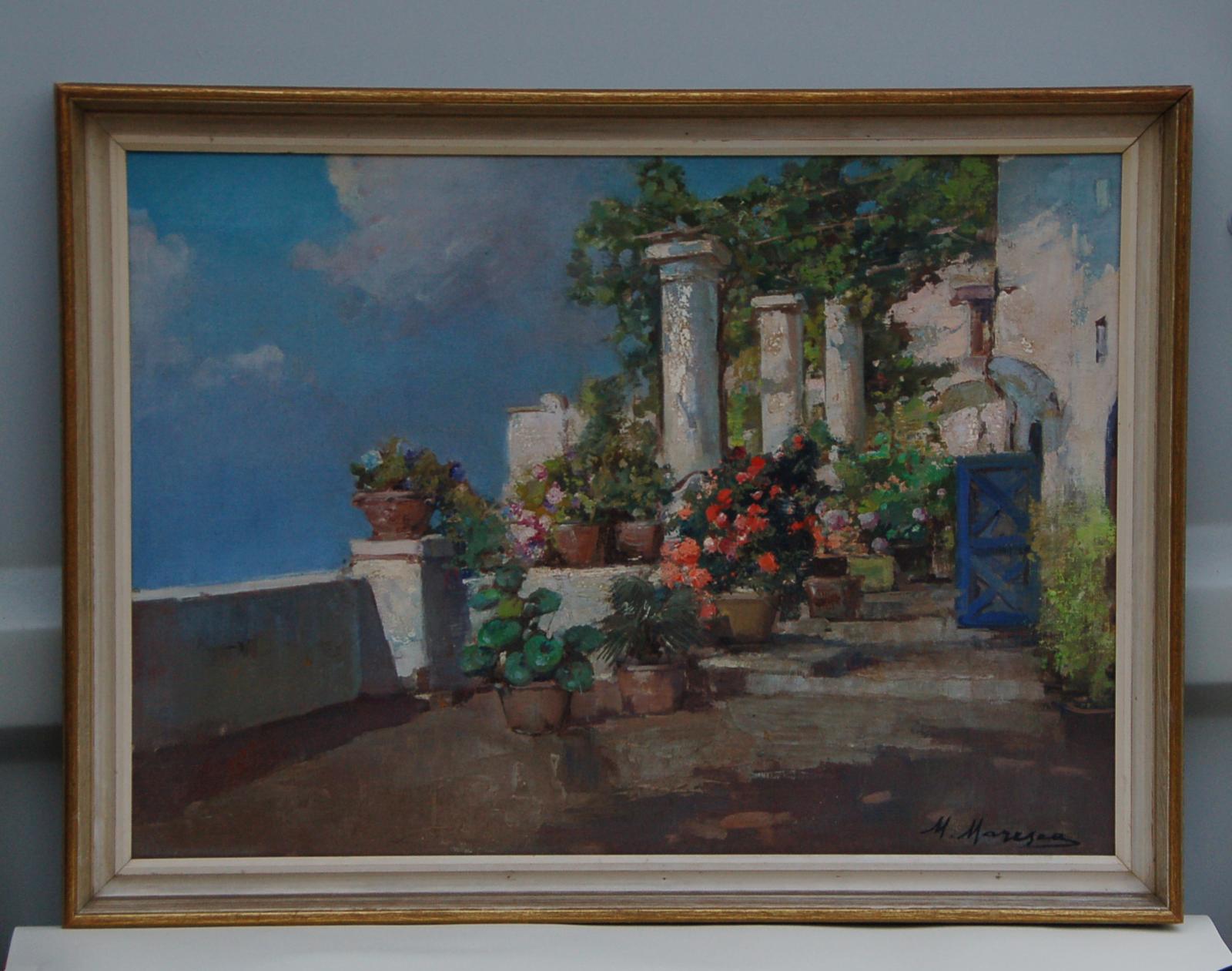 Italian Amalfi Coast Terrace 1950s by Mario Maresca (1877-59) Oil on Canvas
