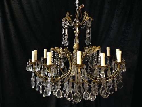 Italian Antique Brass & Crystal Chandelier c.1910