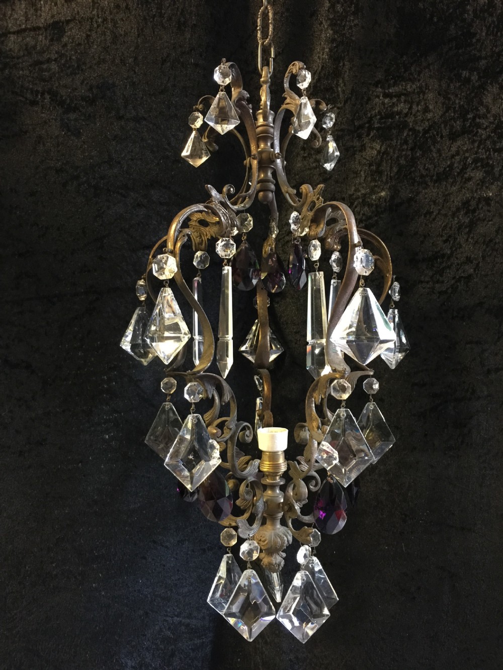 Italian Antique Small Dark Framed Chandelier c.1910