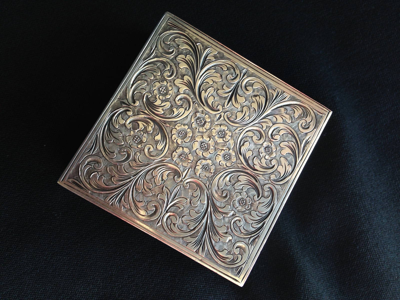 Italian Art Deco Engraved Fine Silver Powder Compact & Lipstick Holder