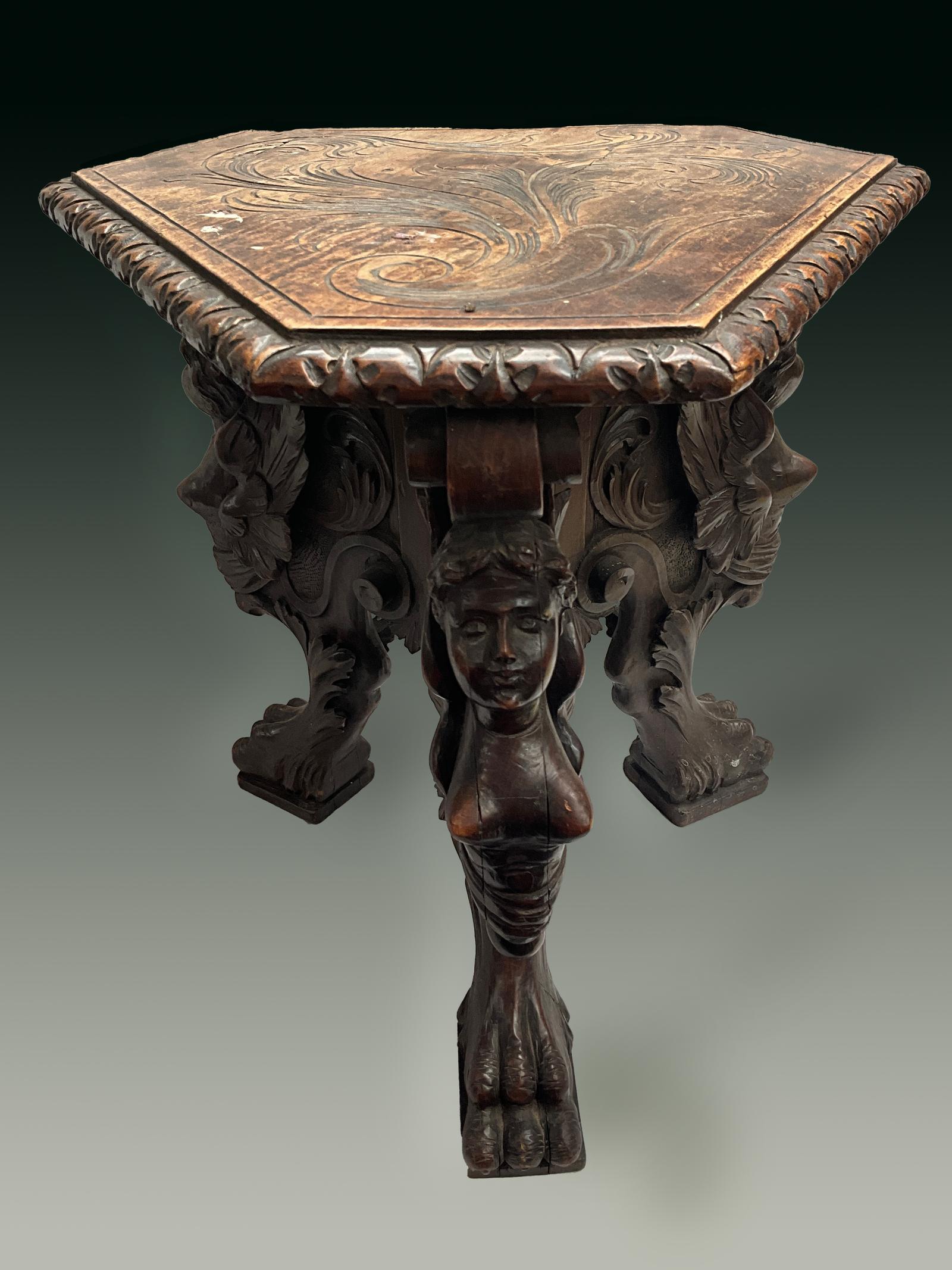 Italian Carved Oak Urn Stand / Stool c.1870