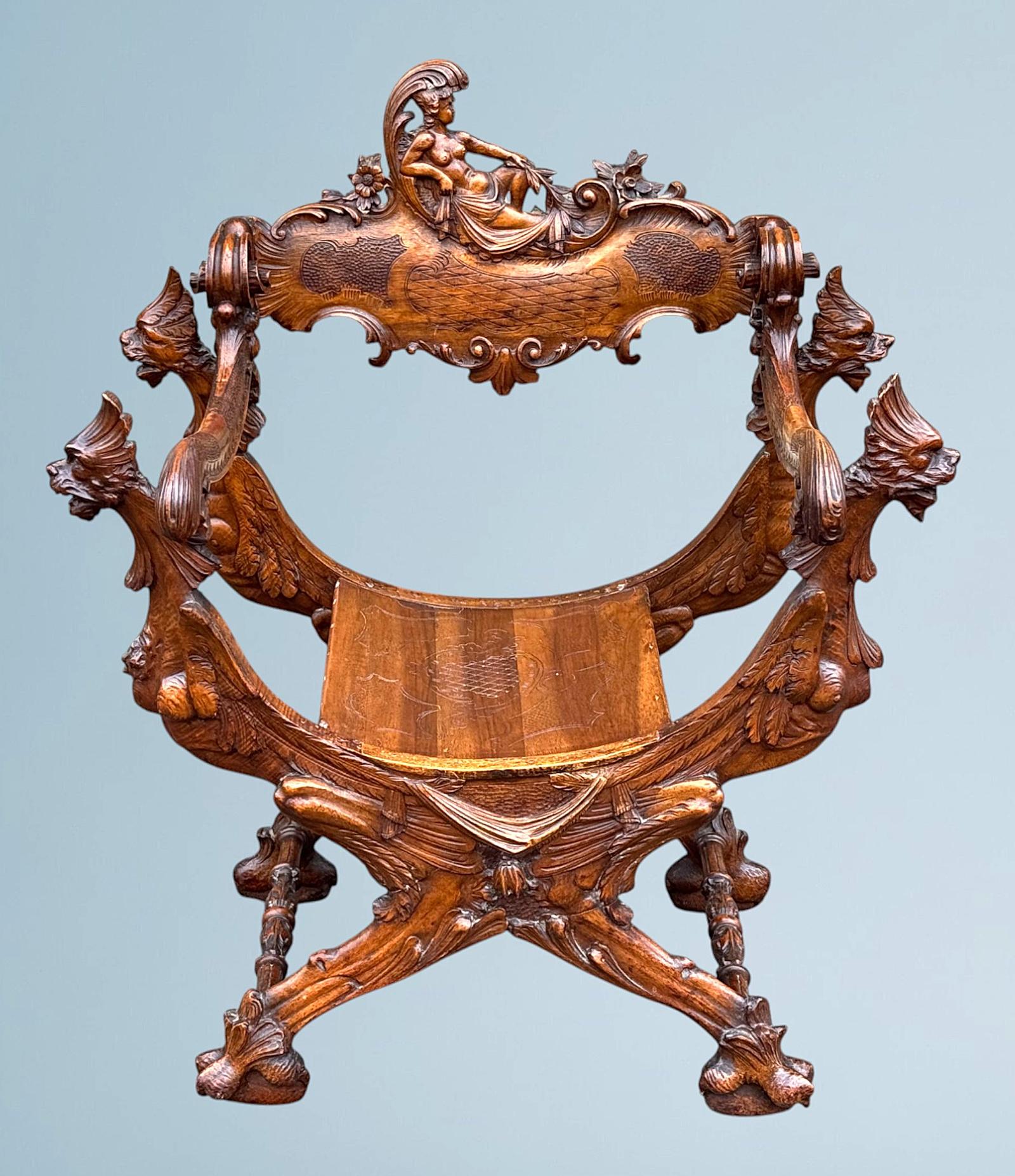 Italian Carved Walnut Savonarola Armchair (1 of 21)