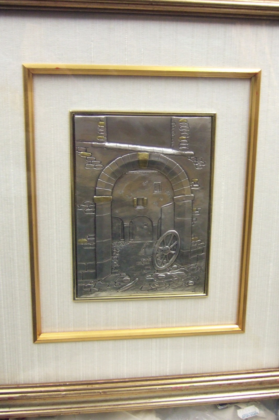 Italian Embossed Silver Plaque of a Courtyard & Wagon Wheel by "Denny" (1 of 5)